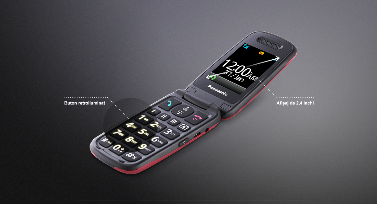 Afișajul TFT strălucitor de 2,4 inchi și butoanele separate de dimensiuni mari, retroiluminate permit formarea fără efort a numerelor, chiar și fără ochelari.